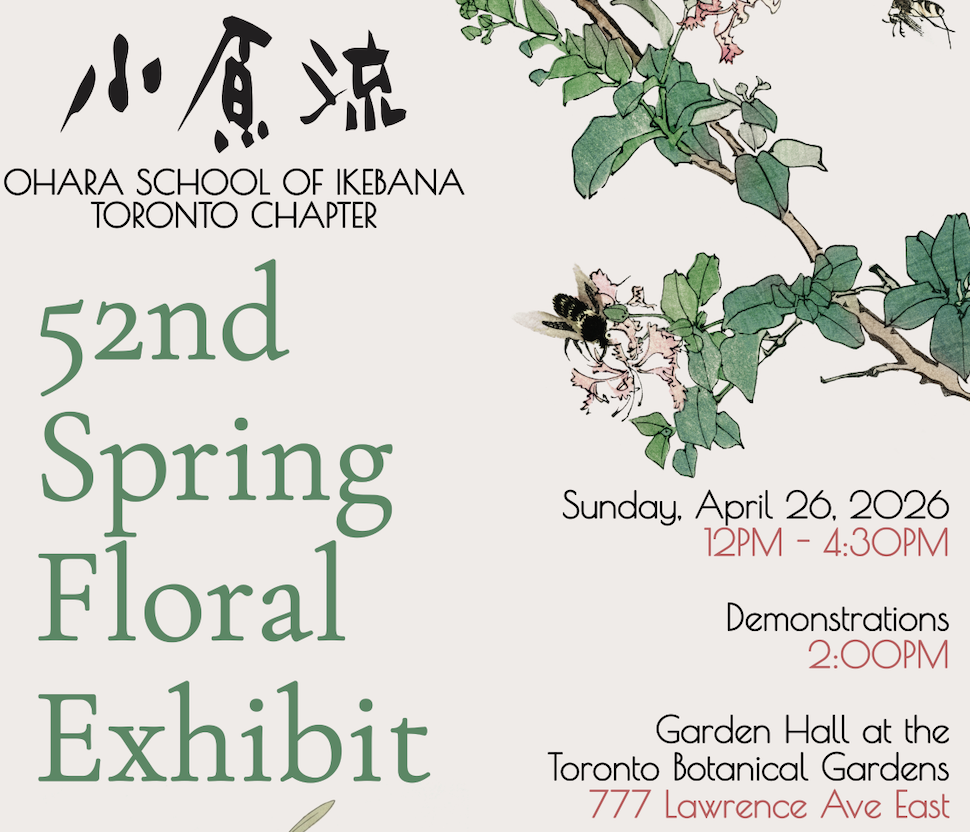 Let us continue sharing this creativity and passion together with each other, and with others who have yet to discover it. I encourage you to experience Ikebana. Join us at our Free Expression workshop on March 07 at the Toronto Botanical Gardens. Register for the workshop by completing this Registration Form.